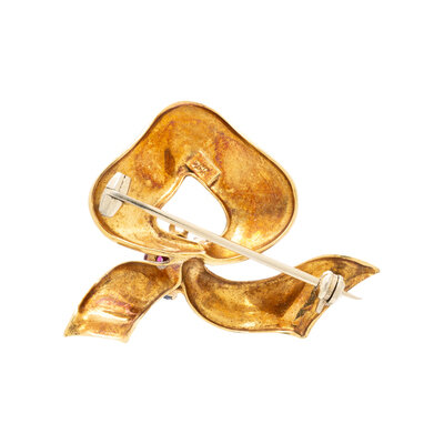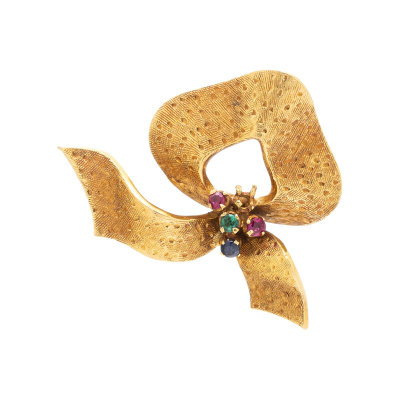 YELLOW GOLD AND MULTIGEM RIBBON BROOCH
