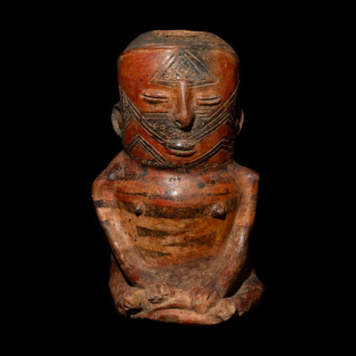 A Cauca Funerary Vessel in the Form of a Seated Thinker (Pensador)