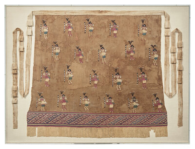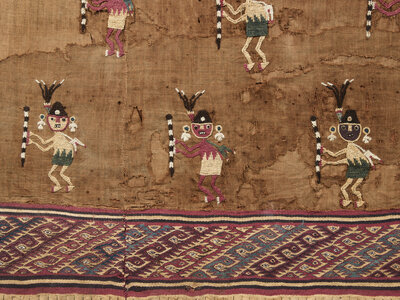 A Huari Pativilca Embroidered Breechcloth Section with Staff-Bearing Warriors