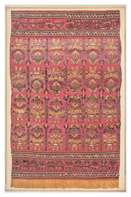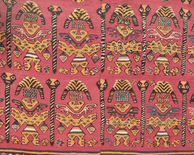 A Chimu Unku Textile with Warriors Carrying Heads