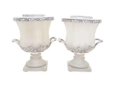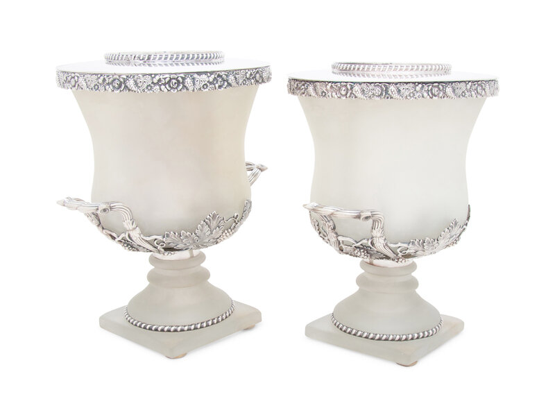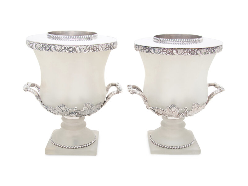 A Pair of English Silver-Plate and Frosted Glass Wine Coolers