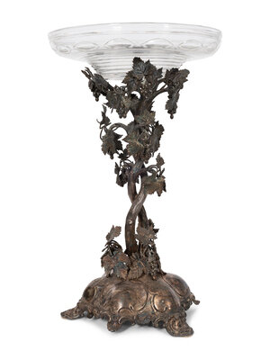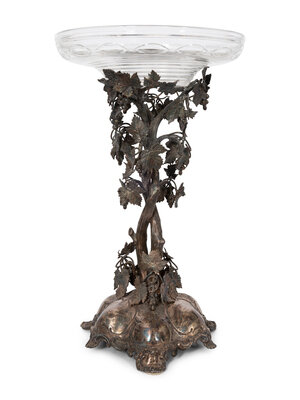 An English Victorian Silver-Plate and Cut Glass Centerpiece