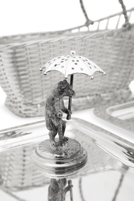 1 silver-plated bear-form figural toothpick holder, height 3 1/2 inches