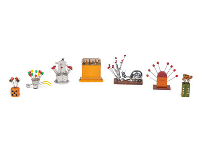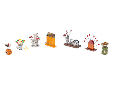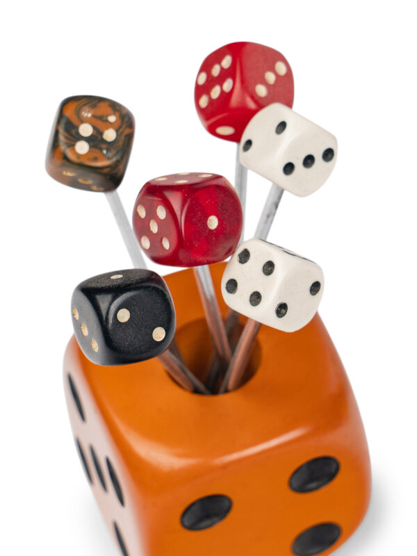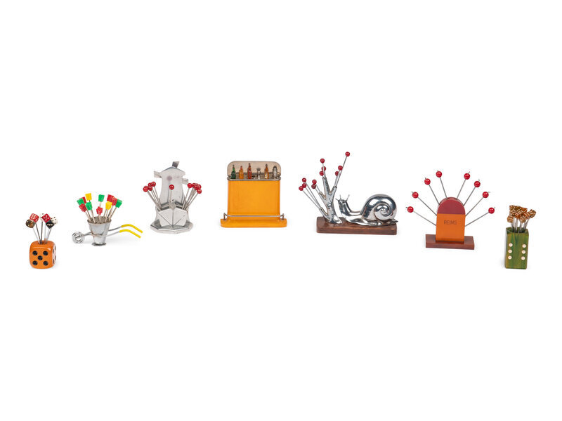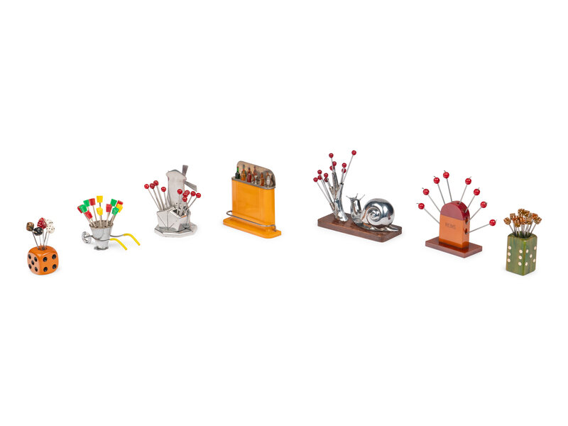A Group of Art Deco Bakelite Whimsical Cocktail Picks in Stands