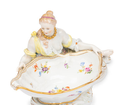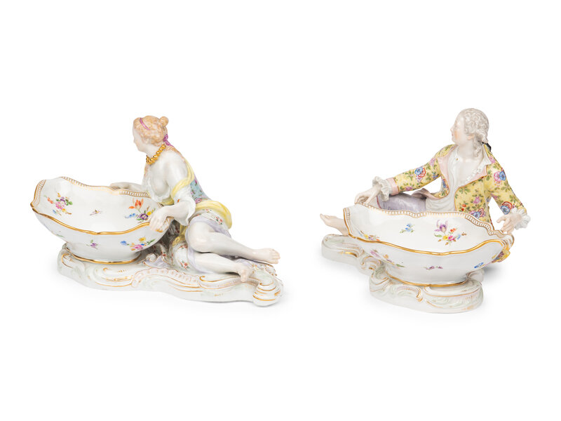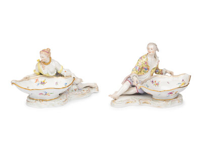 Two Meissen Porcelain Figural Sweetmeat Dishes
