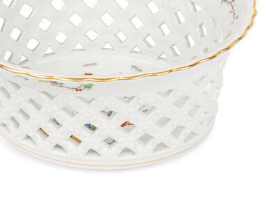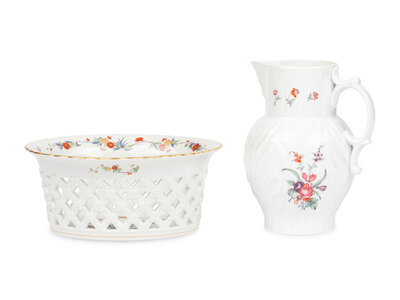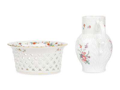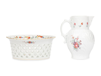 A Mottahedeh Porcelain Pitcher and Centerpiece Basket