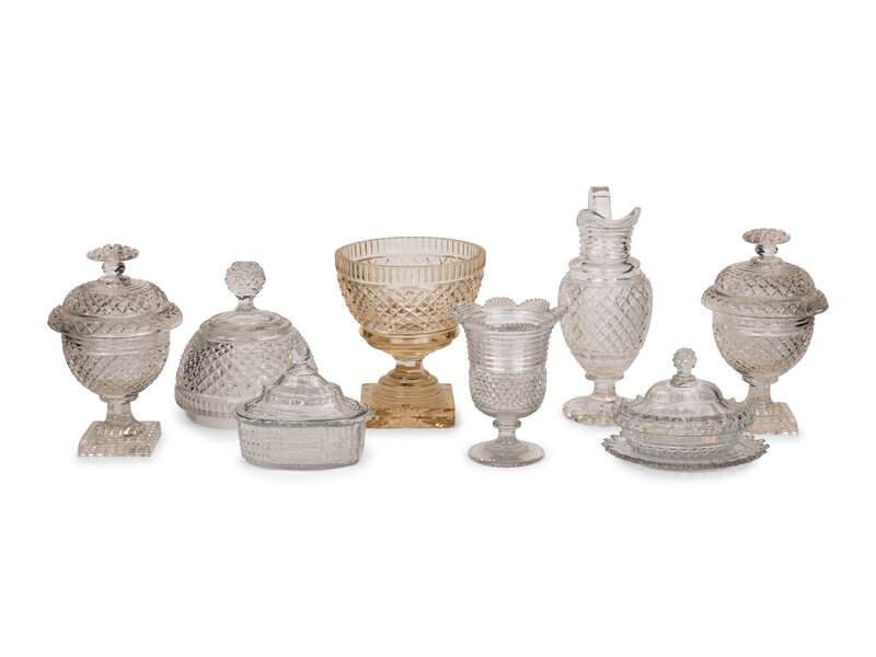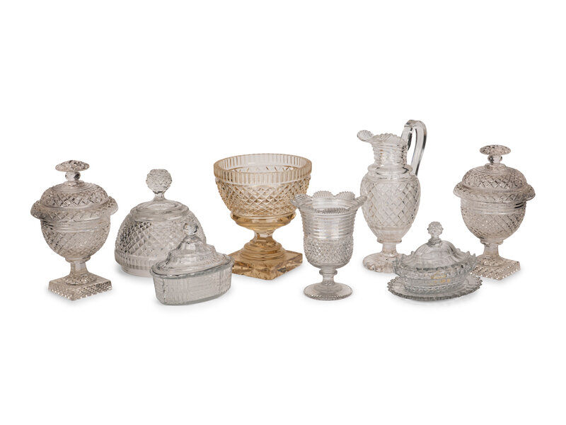comprising covered jars, serving dishes and a claret jug; 16 items total.