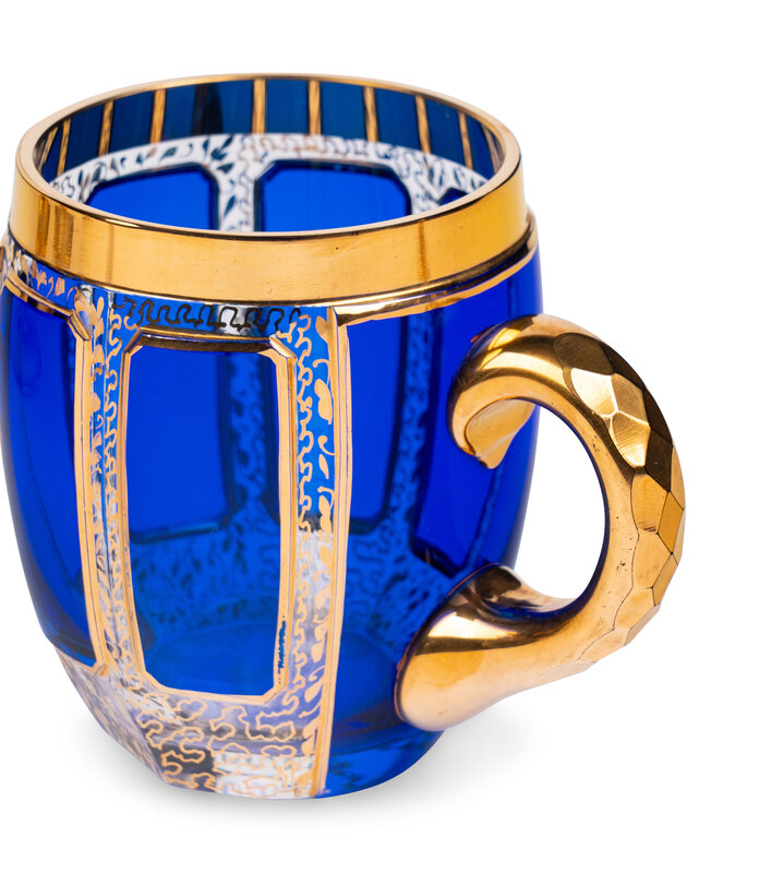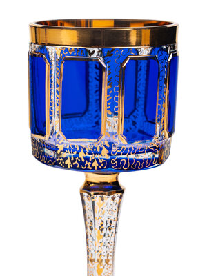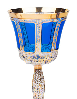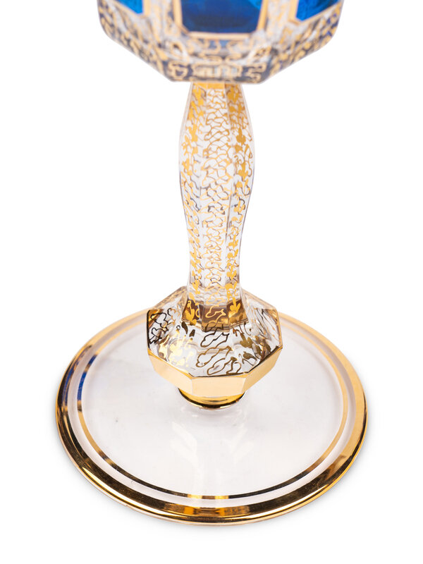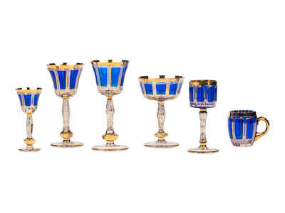 A Set of Moser Cobalt Blue and Gilt Decorated Glass Stemware