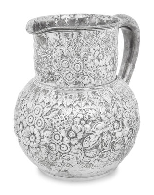 A Tiffany and Co. Silver Repousse Water Pitcher
