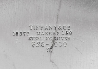 marked Tiffany and Co./Makers/Sterling Silver to underside, with pattern number 18377; the base weighted.