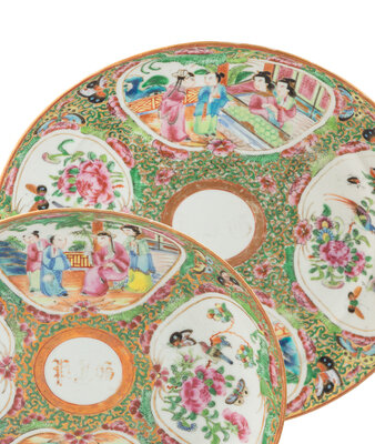 A Collection of Chinese Export Rose Medallion Porcelain Articles