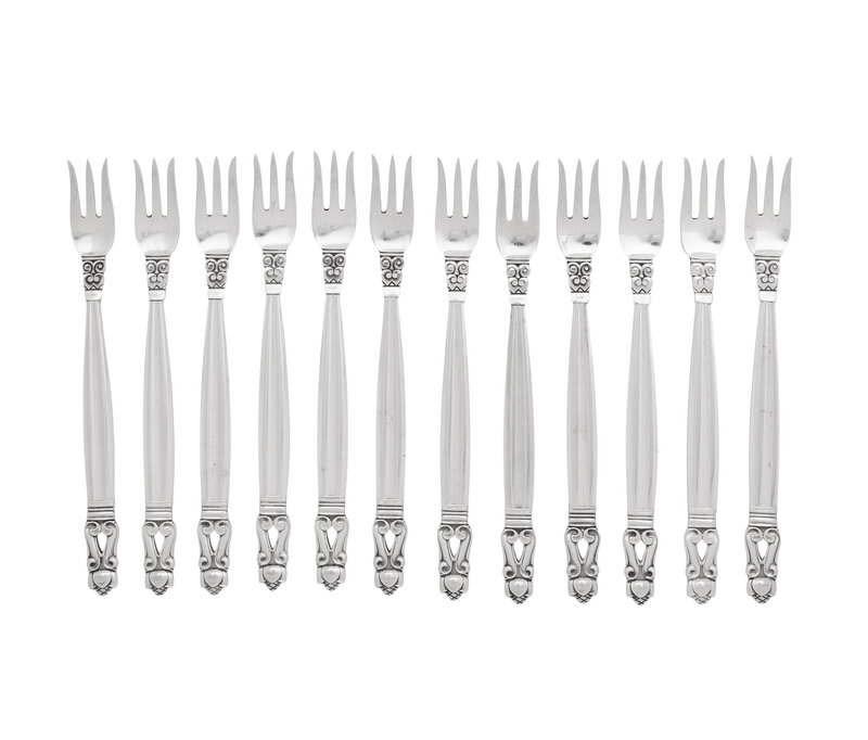 A Set of Twelve Georg Jensen Acorn Silver Cocktail Forks