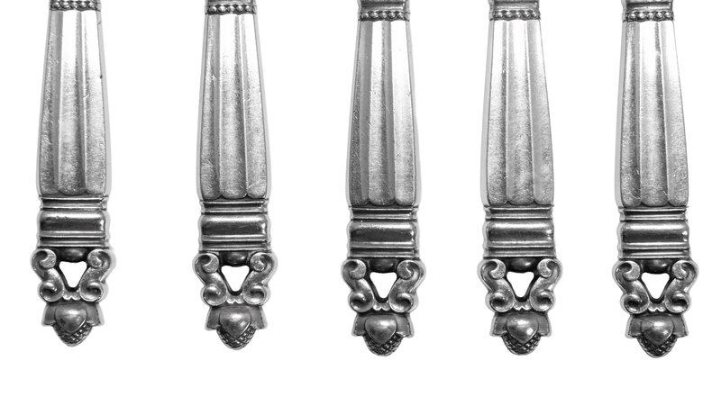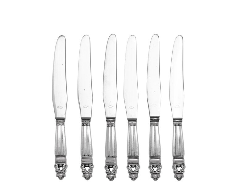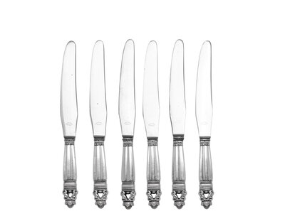 A Set of Six Georg Jensen Acorn Silver Dinner Knives