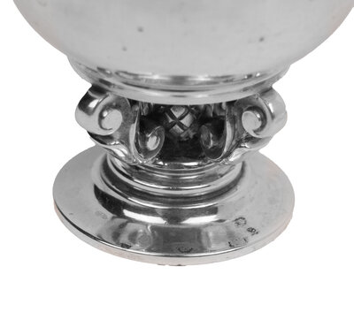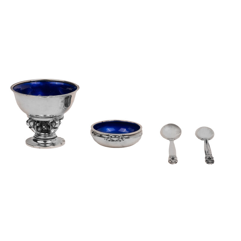 Two Georg Jensen Acorn Salt Cellars and Two Salt Spoons