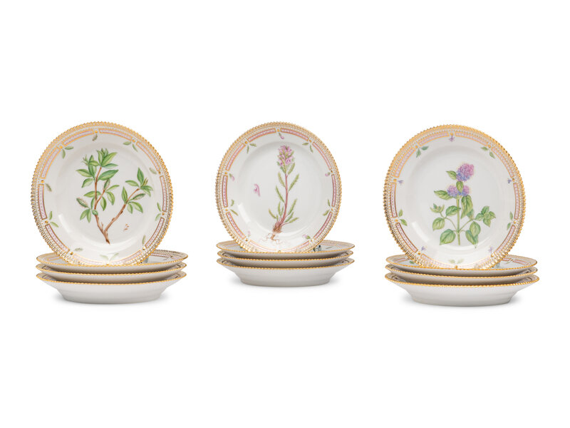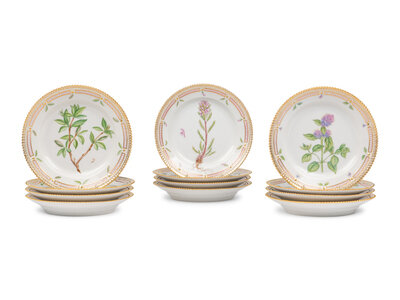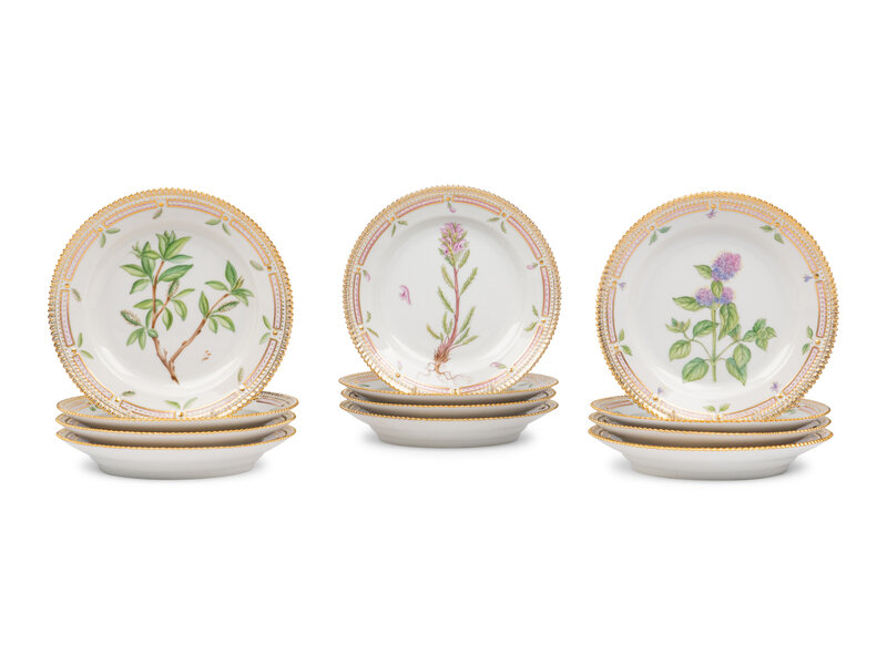 A Set of Twelve Royal Copenhagen Flora Danica Porcelain Salad Plates