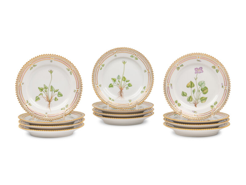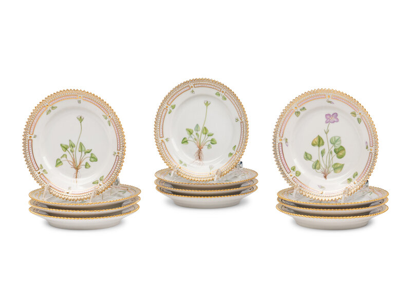 A Set of Twelve Royal Copenhagen Flora Danica Porcelain Bread Plates