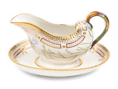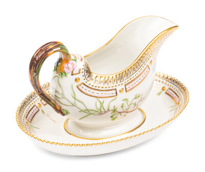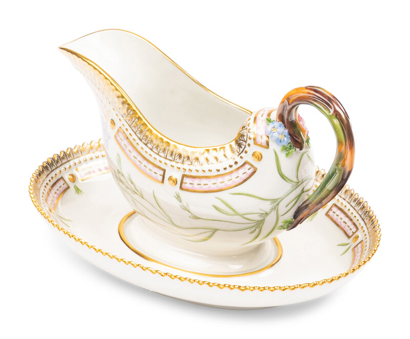 A Royal Copenhagen Flora Danica Porcelain Sauce Boat and Fixed Stand