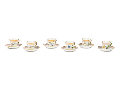 A Set of Six Royal Copenhagen Flora Danica Porcelain Coffee Cups and Saucers