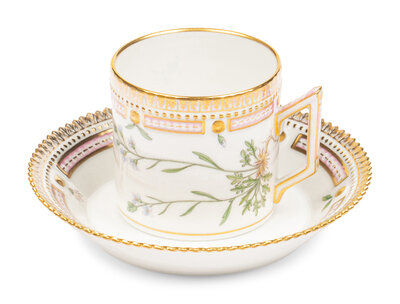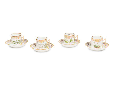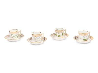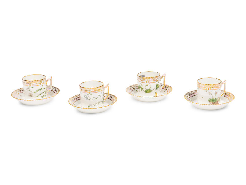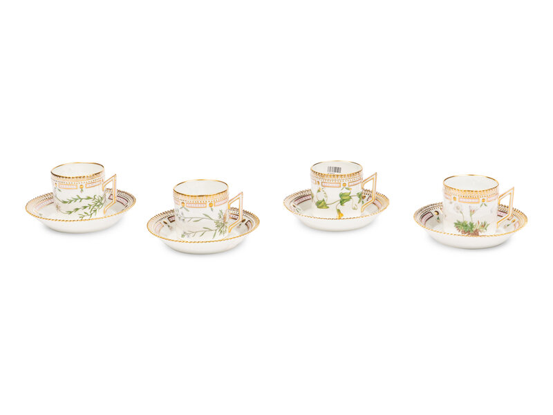 A Set of Four Royal Copenhagen Flora Danica Porcelain Coffee Cups and Saucers