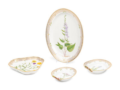 A Group of Four Royal Copenhagen Flora Danica Porcelain Serving Articles