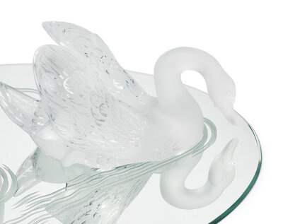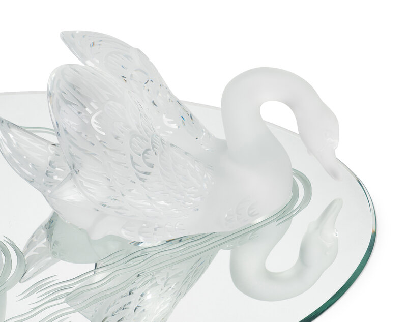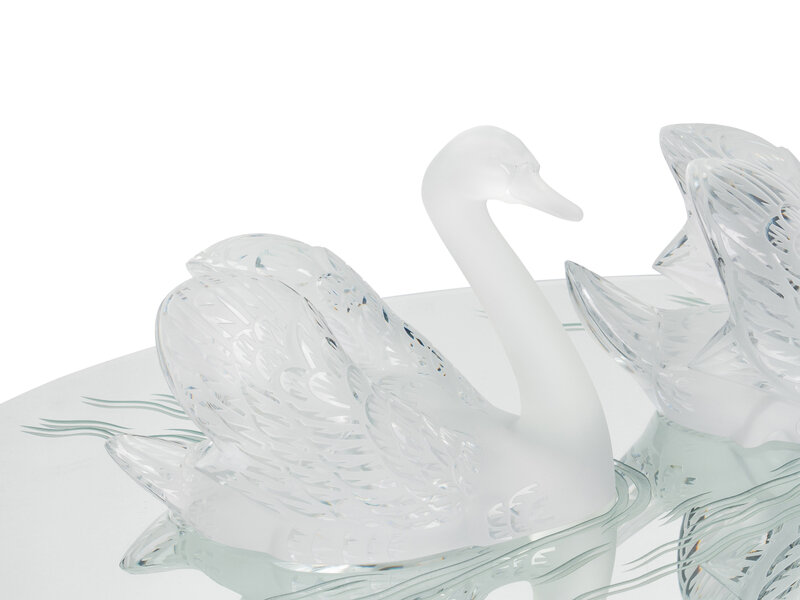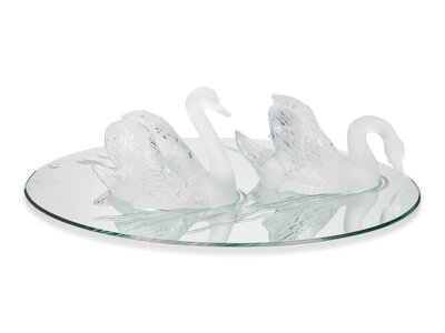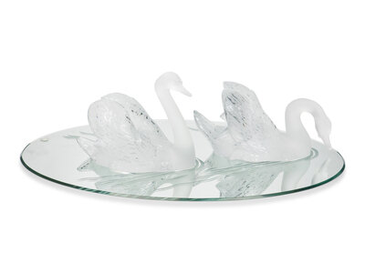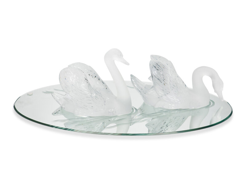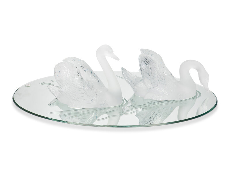 A Pair of Lalique Miroir Cygnes Sculptures and Mirror Plateau