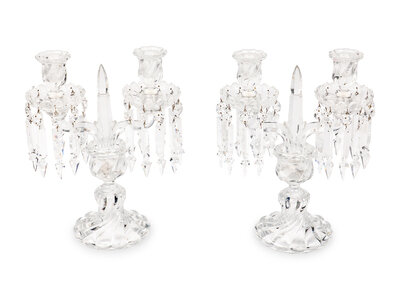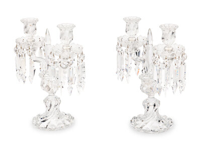 A Pair of Baccarat Molded Glass Two-Light Candelabra