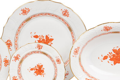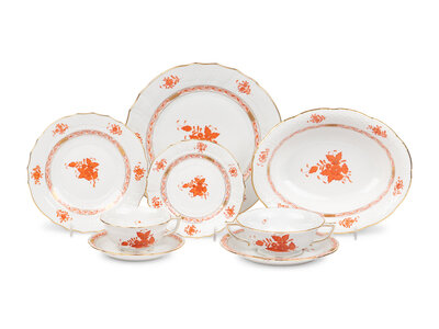 A Herend Chinese Bouquet Rust Porcelain Dinner Service