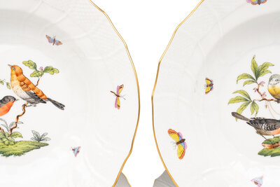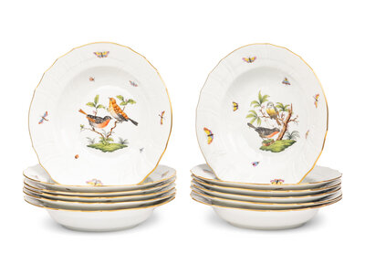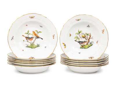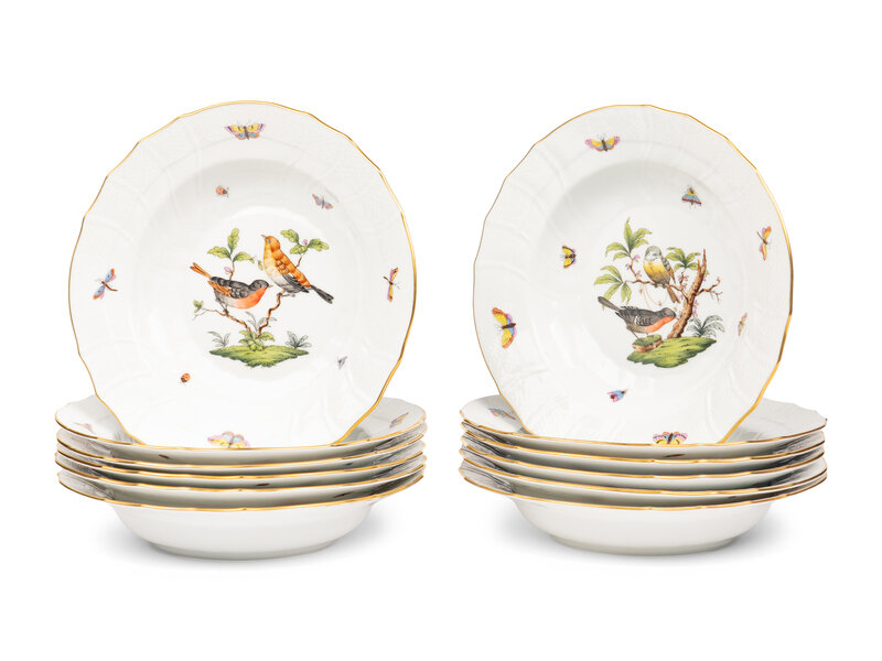 A Set of Twelve Herend Rothschild Bird Porcelain Soup Bowls