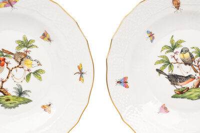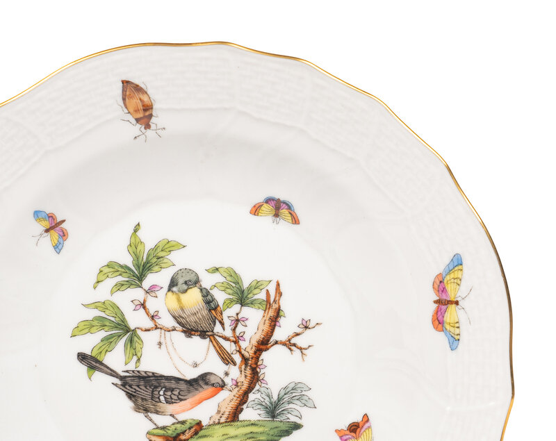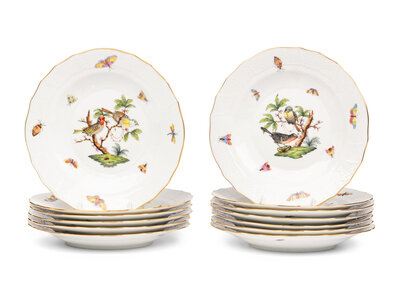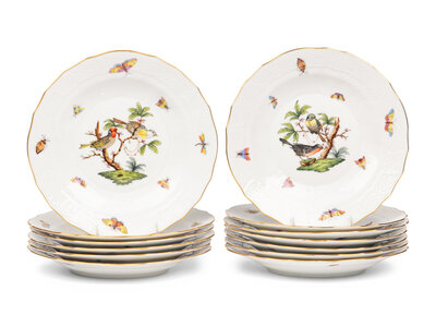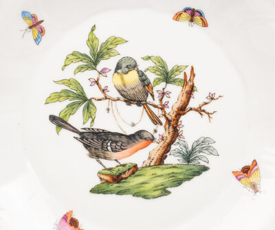 A Set of Thirteen Herend Rothschild Bird Porcelain Dessert Plates