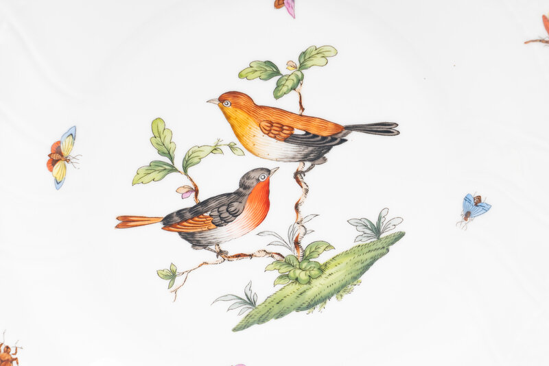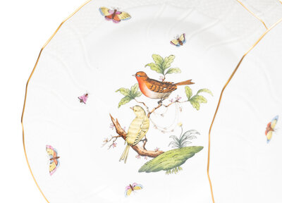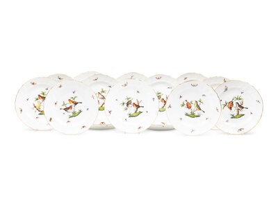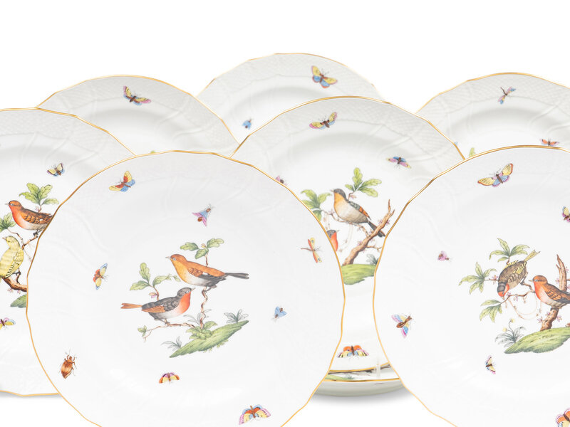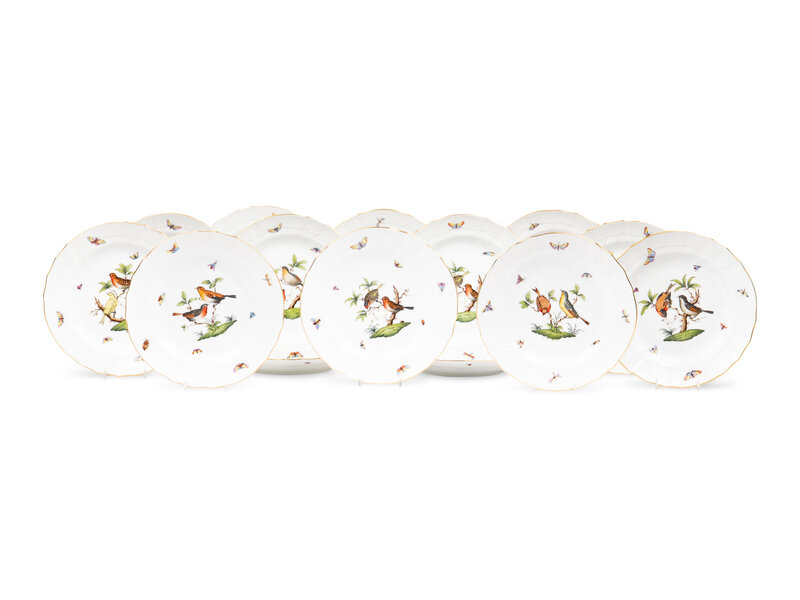 A Set of Fourteen Herend Rothschild Bird Porcelain Dinner Plates