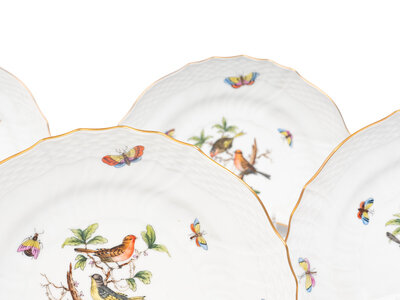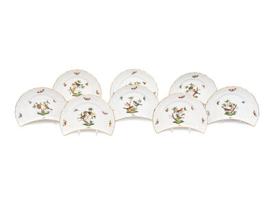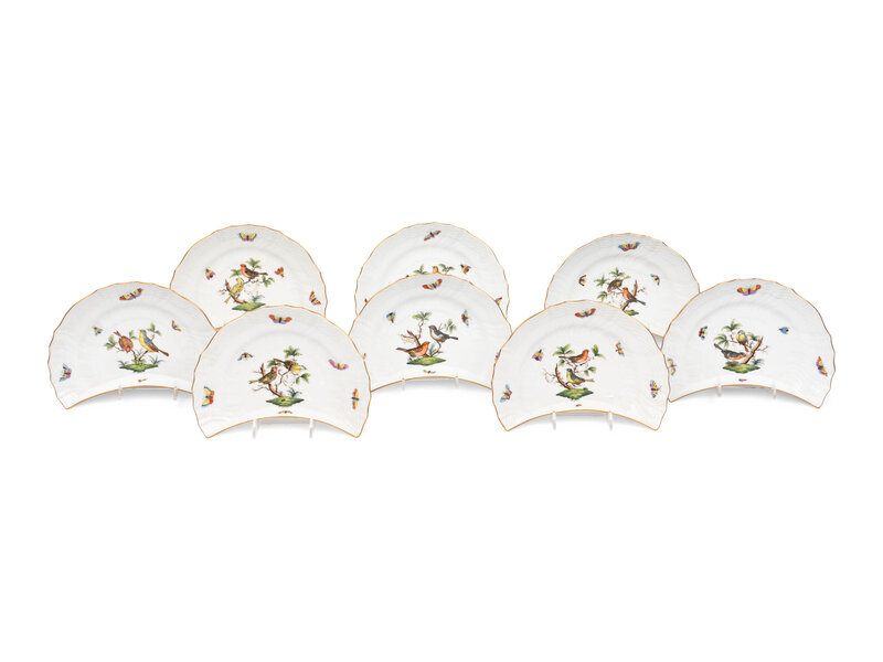 A Set of Eight Herend Rothschild Bird Crescent-Form Side Plates