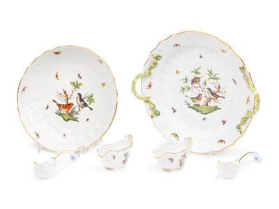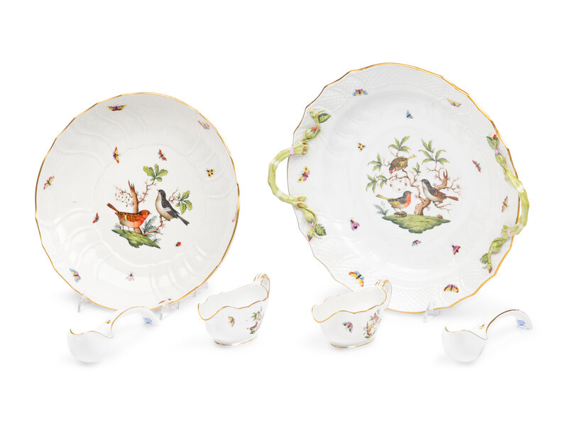 A Collection of Herend Rothschild Bird Porcelain Serving Pieces