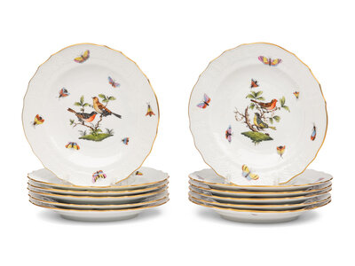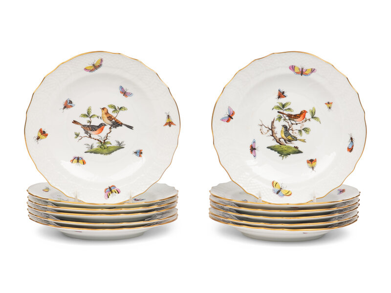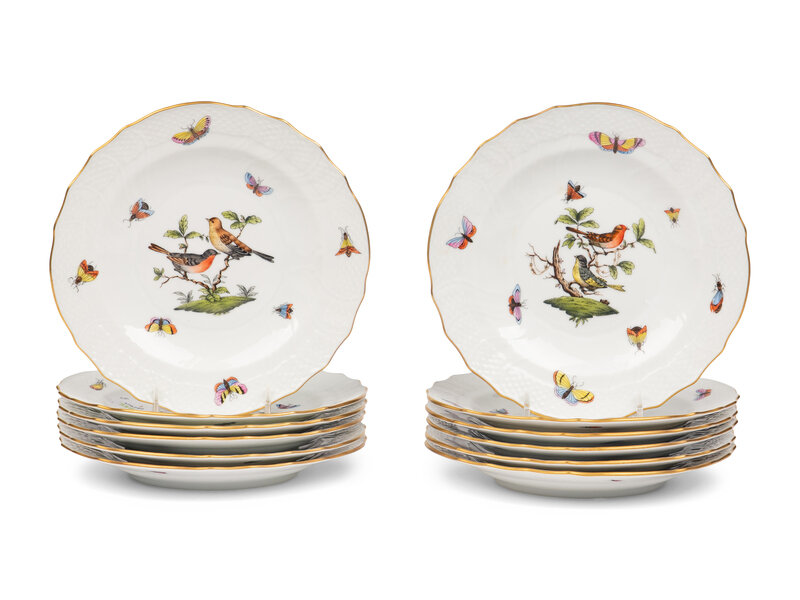 A Set of Twelve Herend Rothschild Bird Porcelain Salad Plates