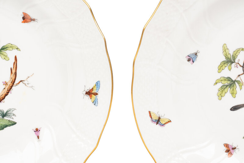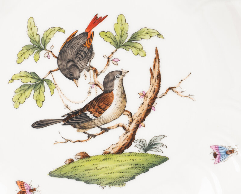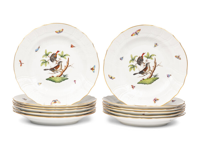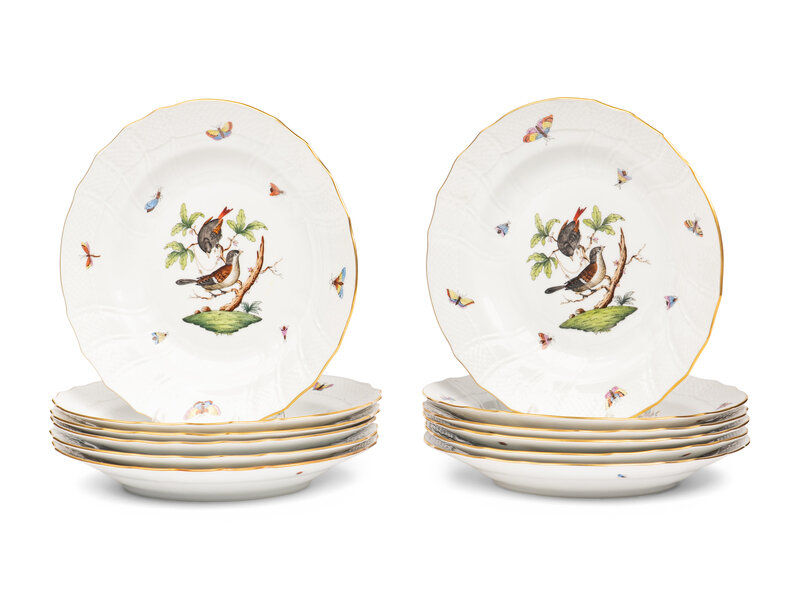 A Set of Twelve Herend Rothschild Bird Porcelain Pasta Plates