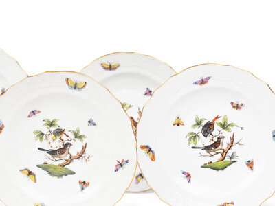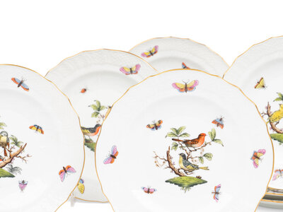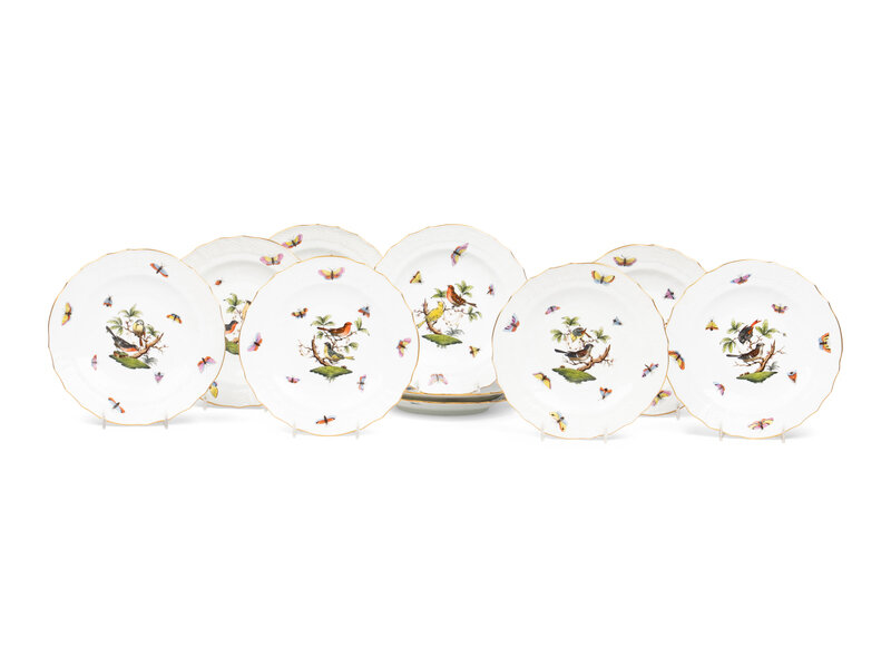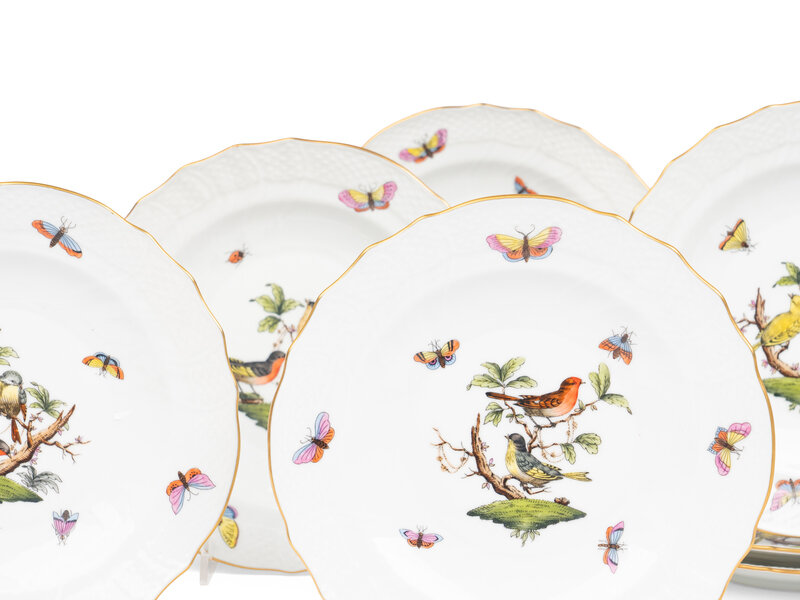 A Set of Ten Herend Rothschild Bird Porcelain Salad Plates