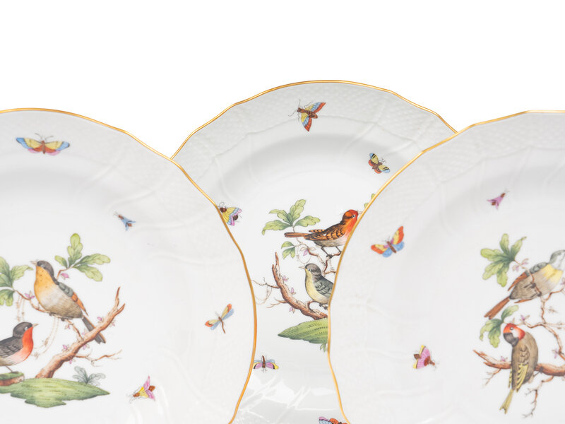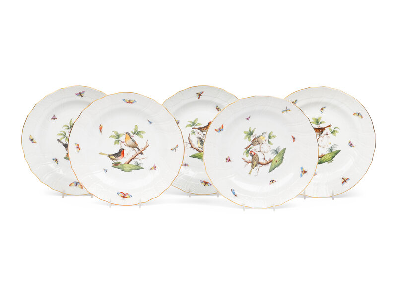 A Set of Five Herend Rothschild Bird Porcelain Pasta Plates