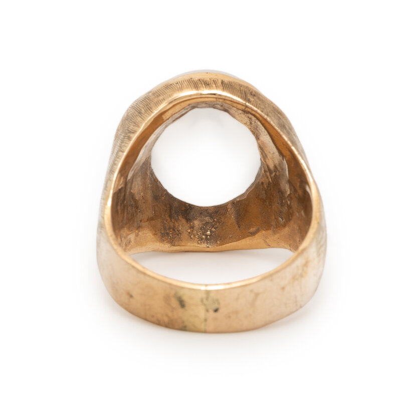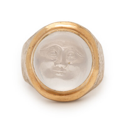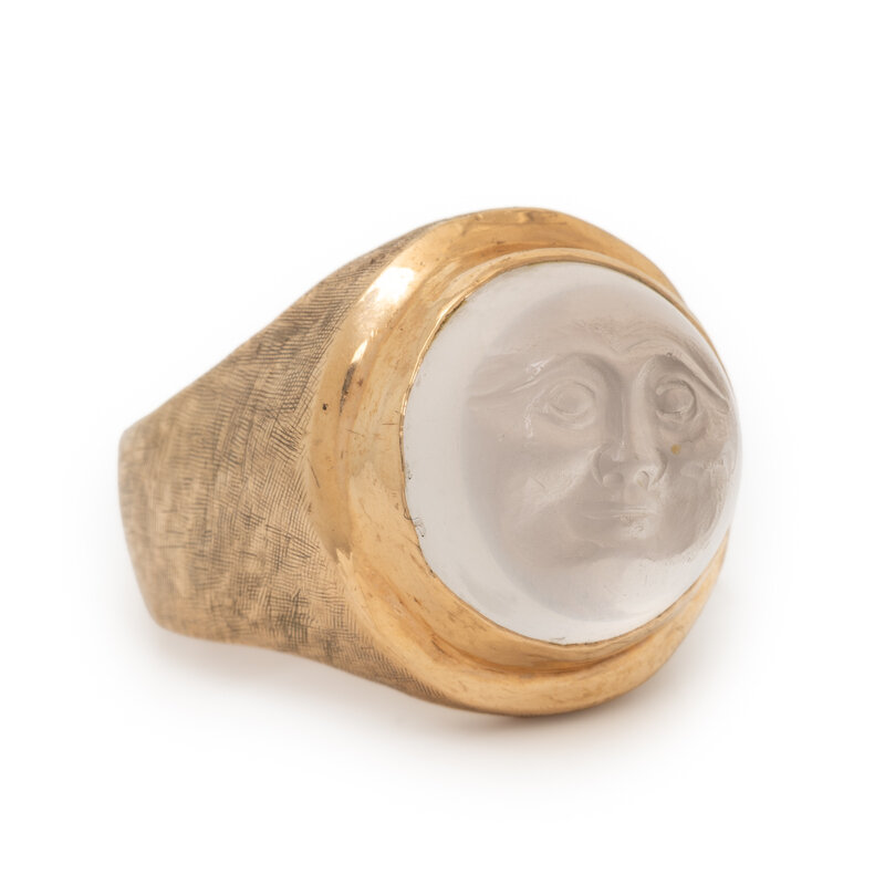 CARVED MOONSTONE AND YELLOW GOLD 'MAN IN THE MOON' RING