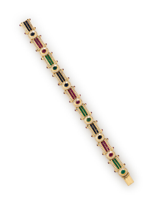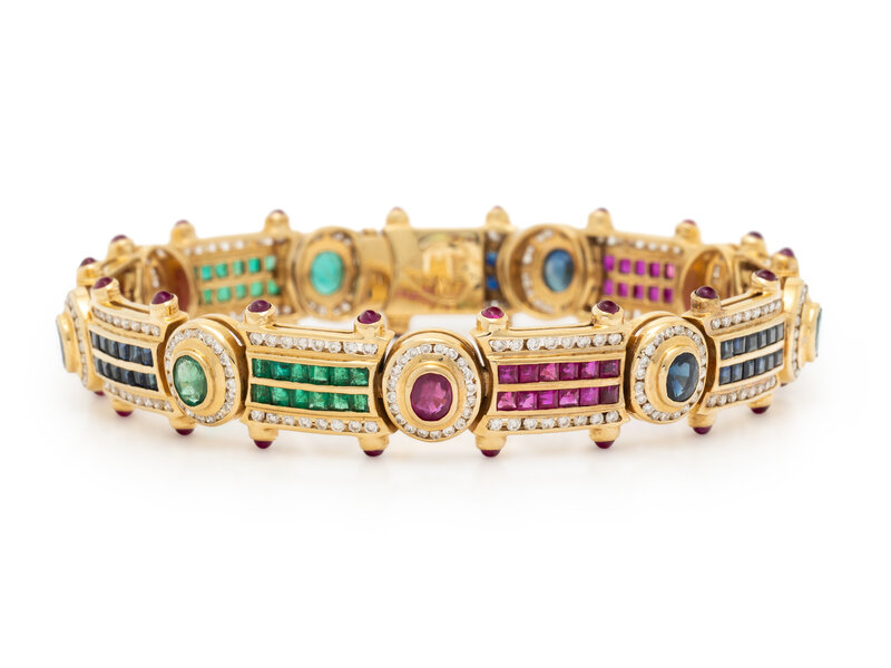 MULTIGEM, DIAMOND, AND YELLOW GOLD BRACELET