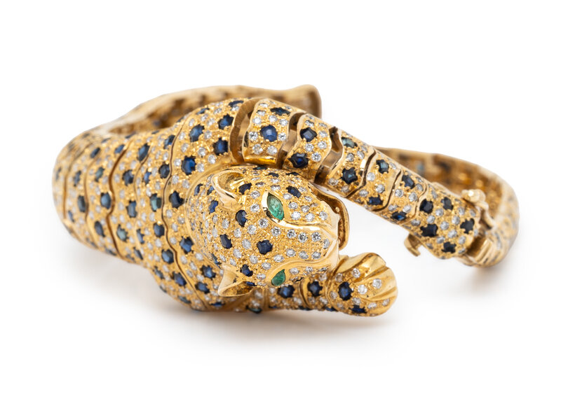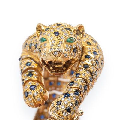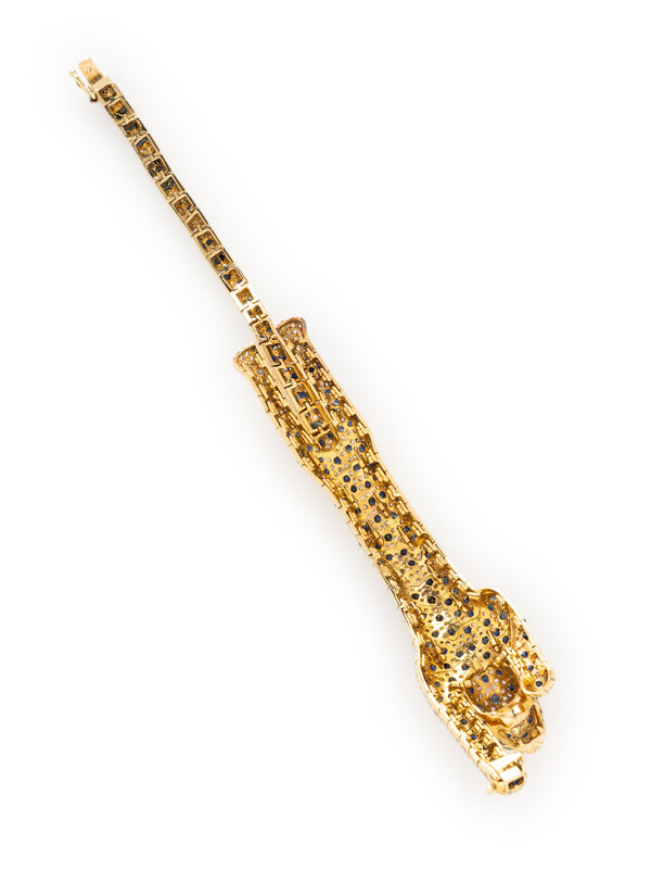 DIAMOND, SAPPHIRE, AND YELLOW GOLD PANTHER BRACELET