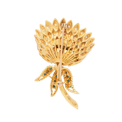 WALLACH, DIAMOND, TURQUOISE, AND YELLOW GOLD FLOWER BROOCH
