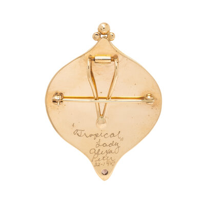 ALEXA & PETER SMARSH, ENAMEL AND YELLOW GOLD 'TROPICAL LADY' PENDANT BROOCH