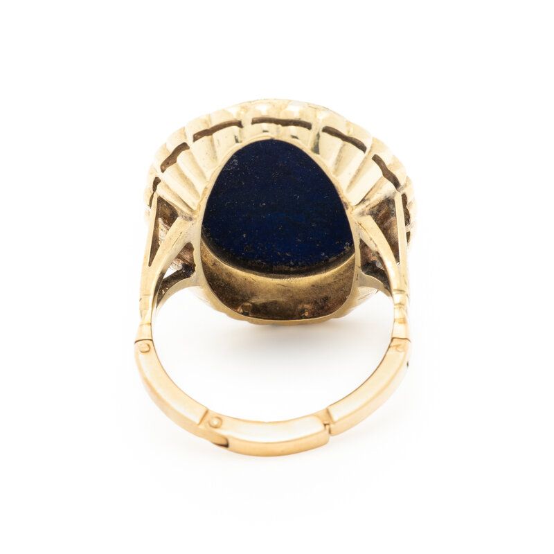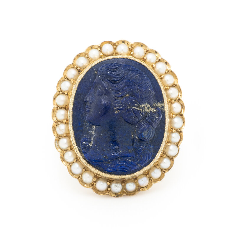 LAPIS LAZULI CAMEO AND SEED PEARL RING