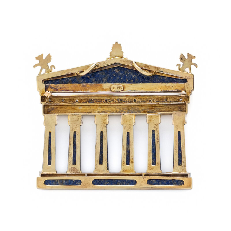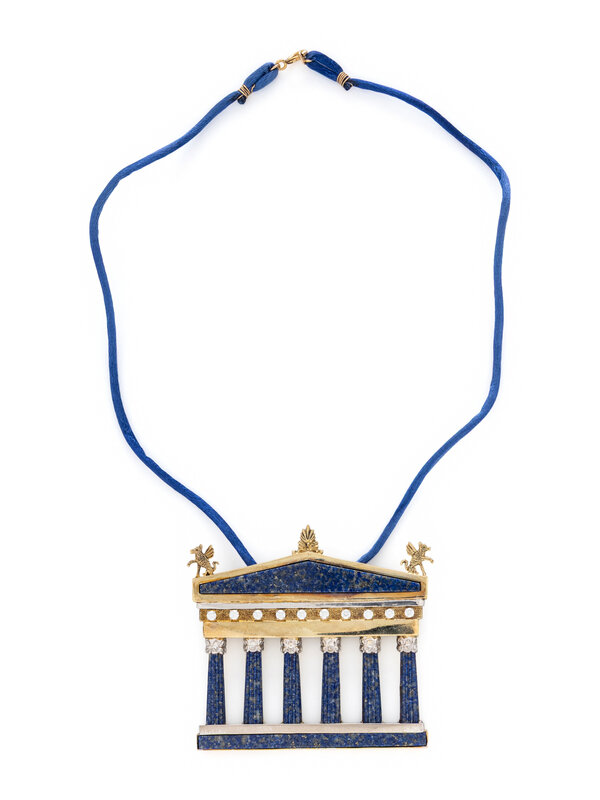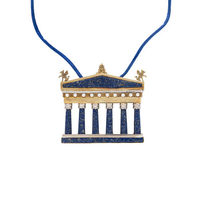 LAPIS LAZULI, DIAMOND, AND GOLD ARCHITECTURAL PENDANT
