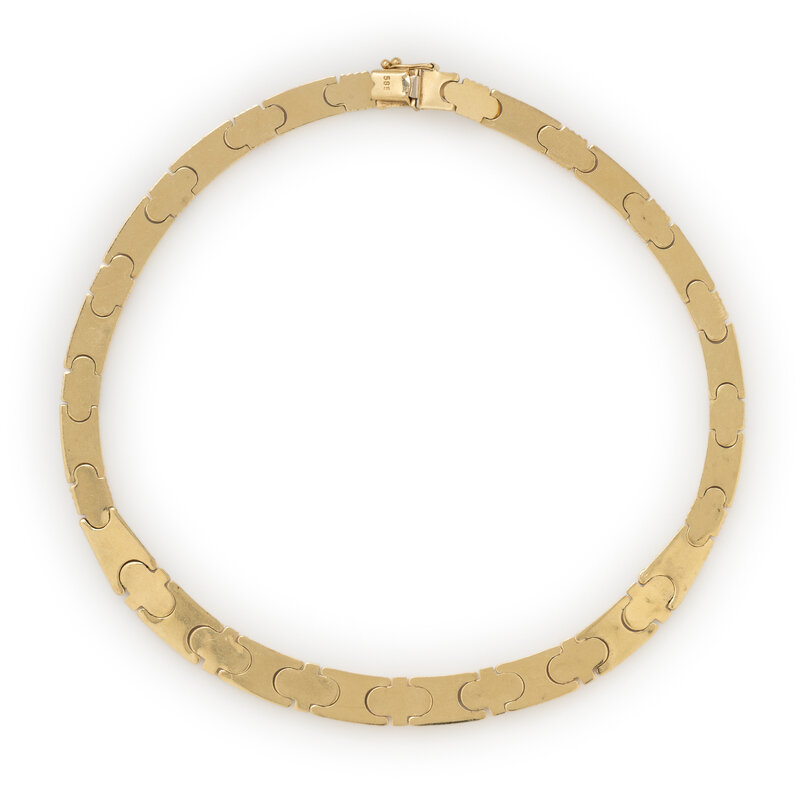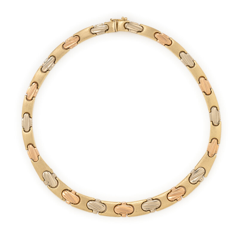 14 karat yellow, white, and rose gold. 14 3/4 inches long.