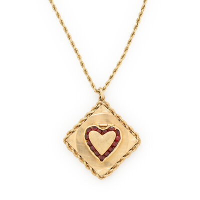 YELLOW GOLD AND GARNET HEART LOCKET NECKLACE