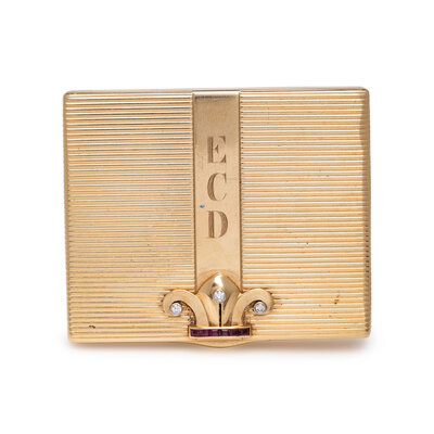 YELLOW GOLD, DIAMOND, AND RUBY POWDER COMPACT