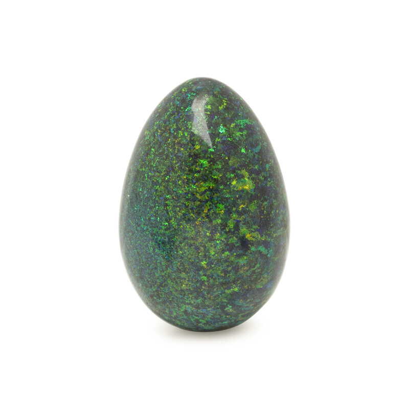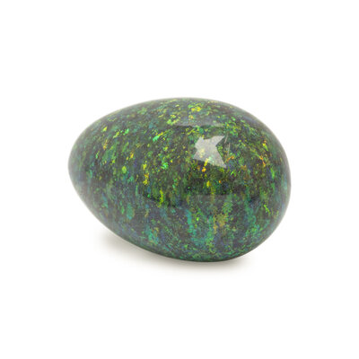 Egg-shaped opal weighing approximately 100.00 carats. 1 3/8 x 7/8 x 7/8 inches.