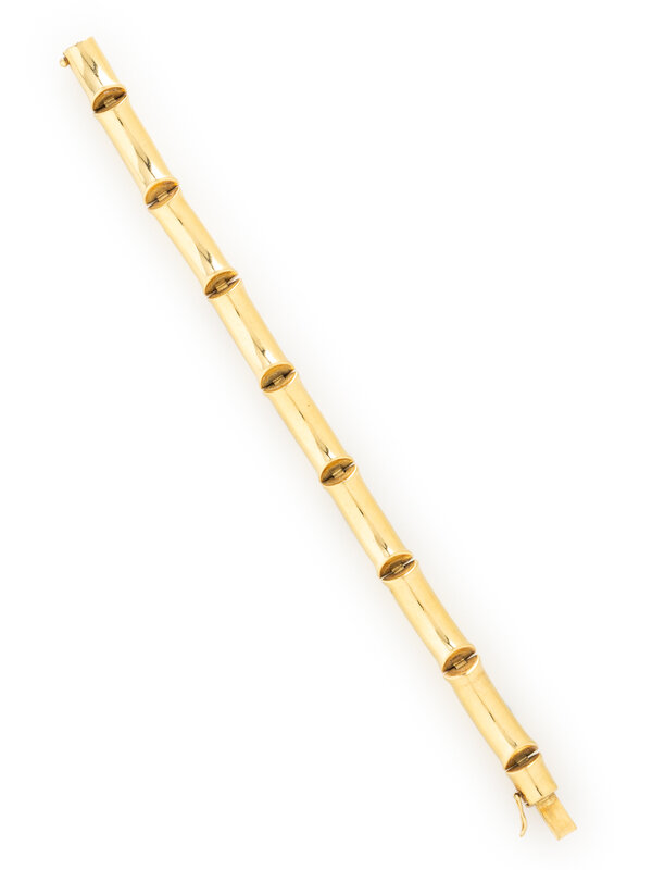 Round diamonds weighing approximately 0.75 carat total. Yellow gold. 7 1/2 inches long