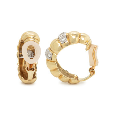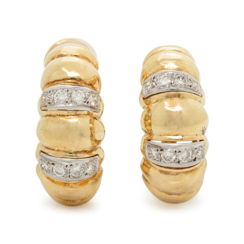 Round diamonds weighing approximately 0.70 carat total. 14 karat yellow and white gold. 1 inch long.
