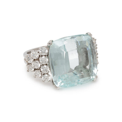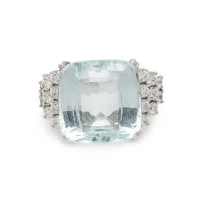 AQUAMARINE, DIAMOND, AND WHITE GOLD RING